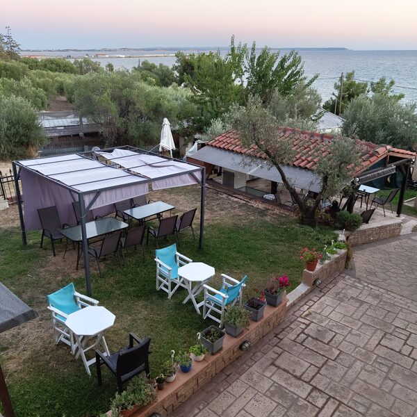OLYMPOS BEACH – viesu nams pašā jūras krastā ar brīnišķīgu pludmali un skatu uz Olimpa kalnu, dārzs ar olīvkokiem, dārza grila terase, terase jūras krastā vīna un saulrietu baudīšanai, skats uz Olimpa kalnu pāri jūras līcim – tas viss Tavai atpūtai no ikdienas un enerģijas uzlādēšanai Grieķijā, pie Nea Moudania pilsētas, 50km jeb 40 minūšu brauciena attālumā no Saloniku (Thessaloniki) lidostas.
